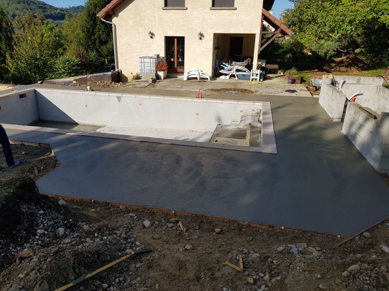 Chantier St Marcel Bel Accueil 38080. Piscine 7x3.5 fond, pente composée 1m10 / 1m50, PVC à venir, Couleur sable