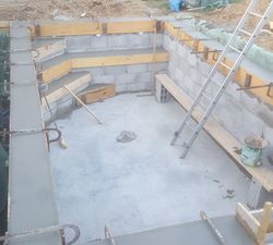 Chantier Maubec 38300, piscine 8x4, pente composée 1m20 / 1m50, PVC Gris Clair